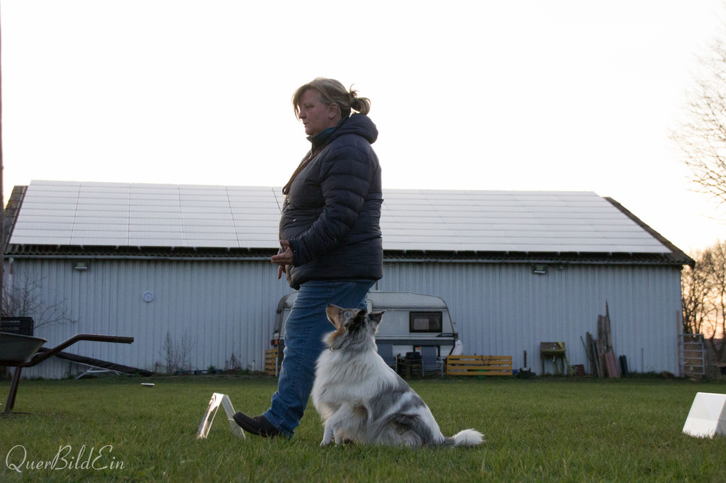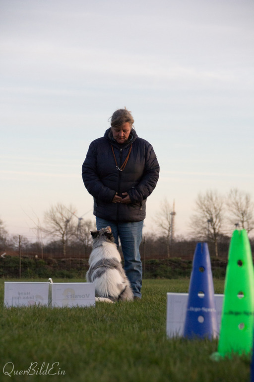 Beim Rally Obedience wird ein Parcour aus Schildern mit "Aufgaben" aufgebaut und soll dann abgelaufen werden. Dabei kommen viele verschiedene Aufgaben auf euch zu. Z.B. Sitz, Platz, um den Hund herum u.s.w. Es wird also nie langweilig. Und das jede Woche neu.
